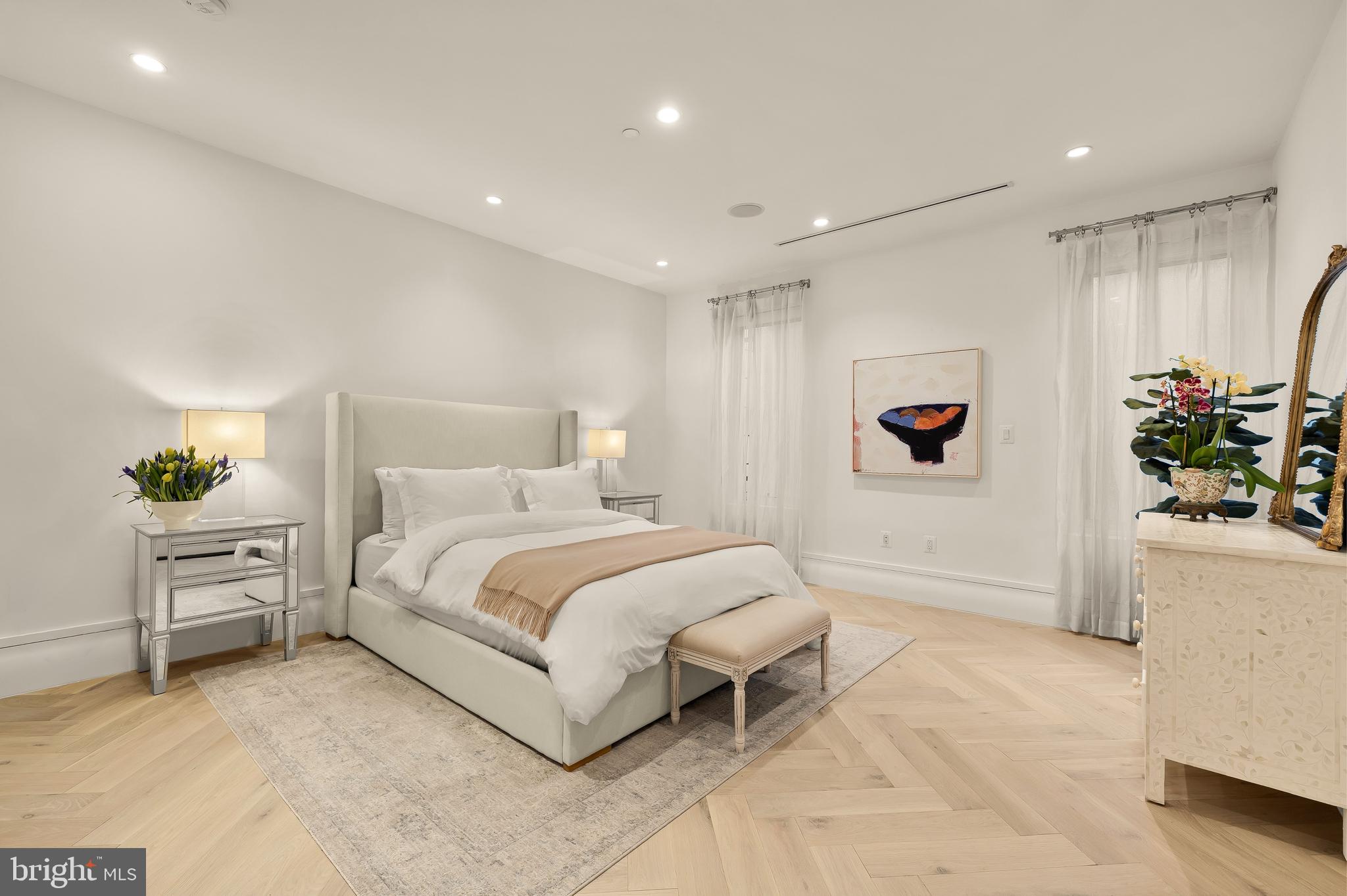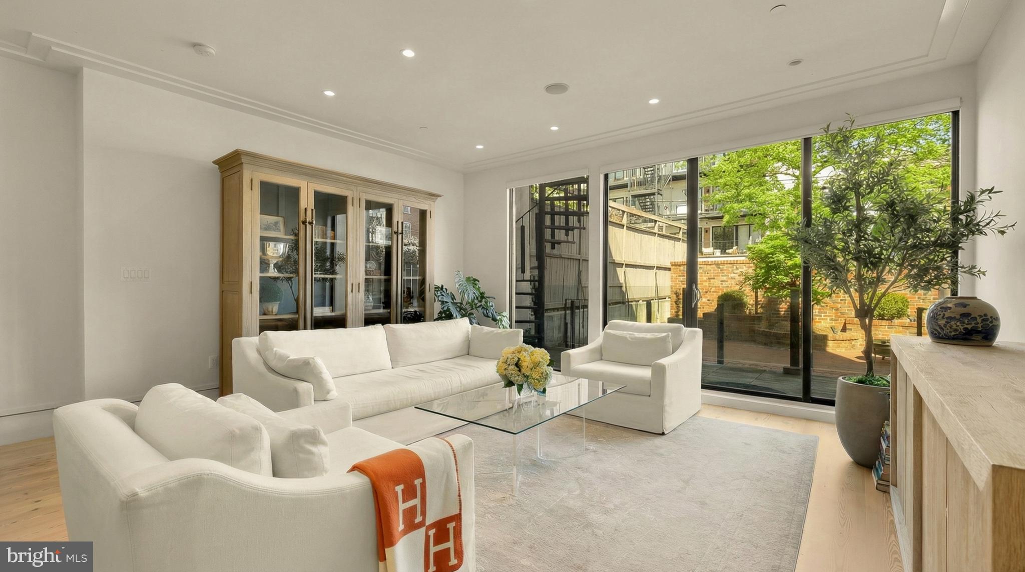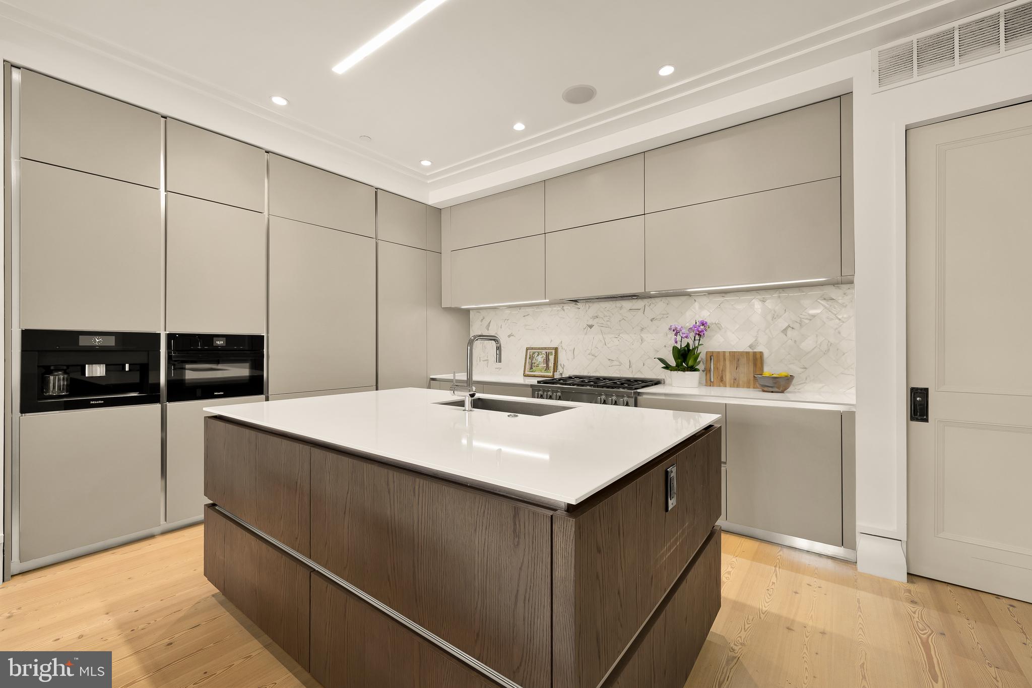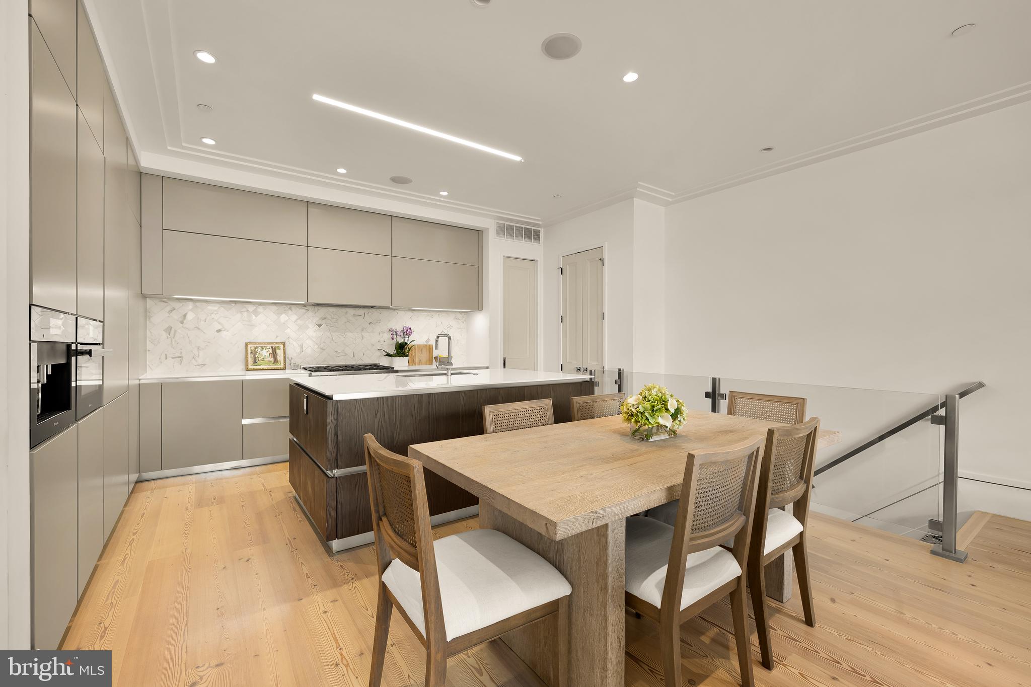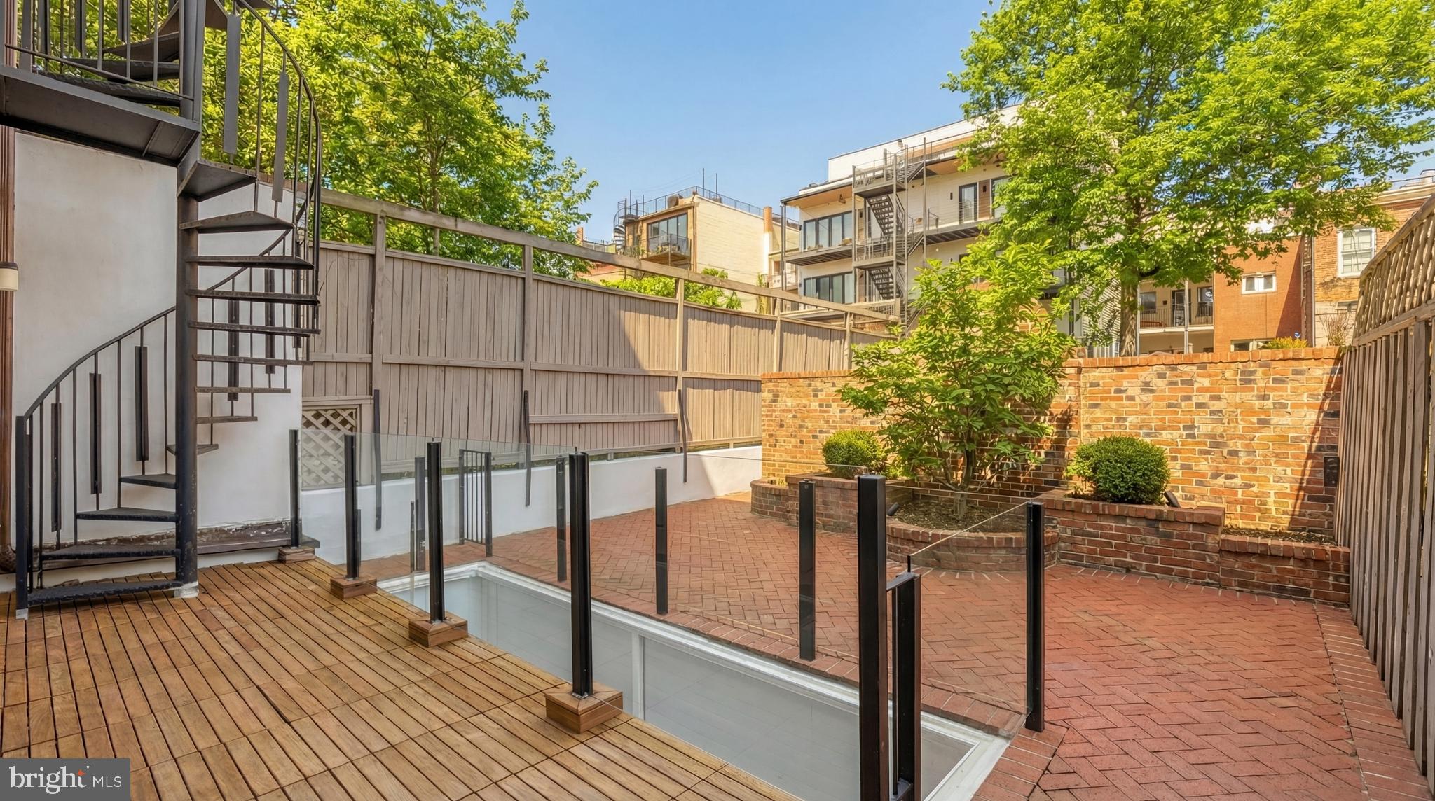 1837 Wyoming Avenue is located on a tranquil block, straddling the boundary between the prestige of Kalorama and the energy of Adams Morgan, a boutique building comprising of luxury condominiums finished to the highest degree. The facade of the building evokes reserved elegance with its inlaid red brick and classic dormers. Amongst this distinguished company is Unit B, a private rear duplex spanning a generous 1,633 square feet of elegant living space. The main level is a fully open concept space encompassing living, dining, and kitchen areas. High ceilings, wide-plank white oak floors, recessed lighting, and a floor-to-ceiling glass wall opening onto the rear patio. The chef's kitchen combines form and function, with Italian cabinetry complementing a herringbone marble backsplash and contrasting Dekton center island and suite of Miele appliances, including a commercial-grade gas range and built in espresso machine. The outdoor space, with its brick paver patio, and uplit landscaping, is a coveted amenity in such a central location. A glass-railed staircase leads down to the bedroom level, where the primary bedroom showcases herringbone white oak floors. Double doors open into the ensuite bath with contrasting dark and light marble, featuring heated floors, a double floating vanity, freestanding soaking tub, and oversized walk-in glass shower. A walk-in custom California Closet completes the suite. The second bedroom also features ample storage and a marble ensuite bath with radiant floor heating. Glistening Emtek hardware and a surround sound system are found throughout. Convenient in-unit laundry, a separate powder room, and available RENTAL PARKING are additional desirable features. A second rental space is also available. The location is truly incomparable, being steps from the natural retreat of Kalorama Park, and vibrant dining scene including Lapis, Maison Bar a Vin, Cana, and Tatte.