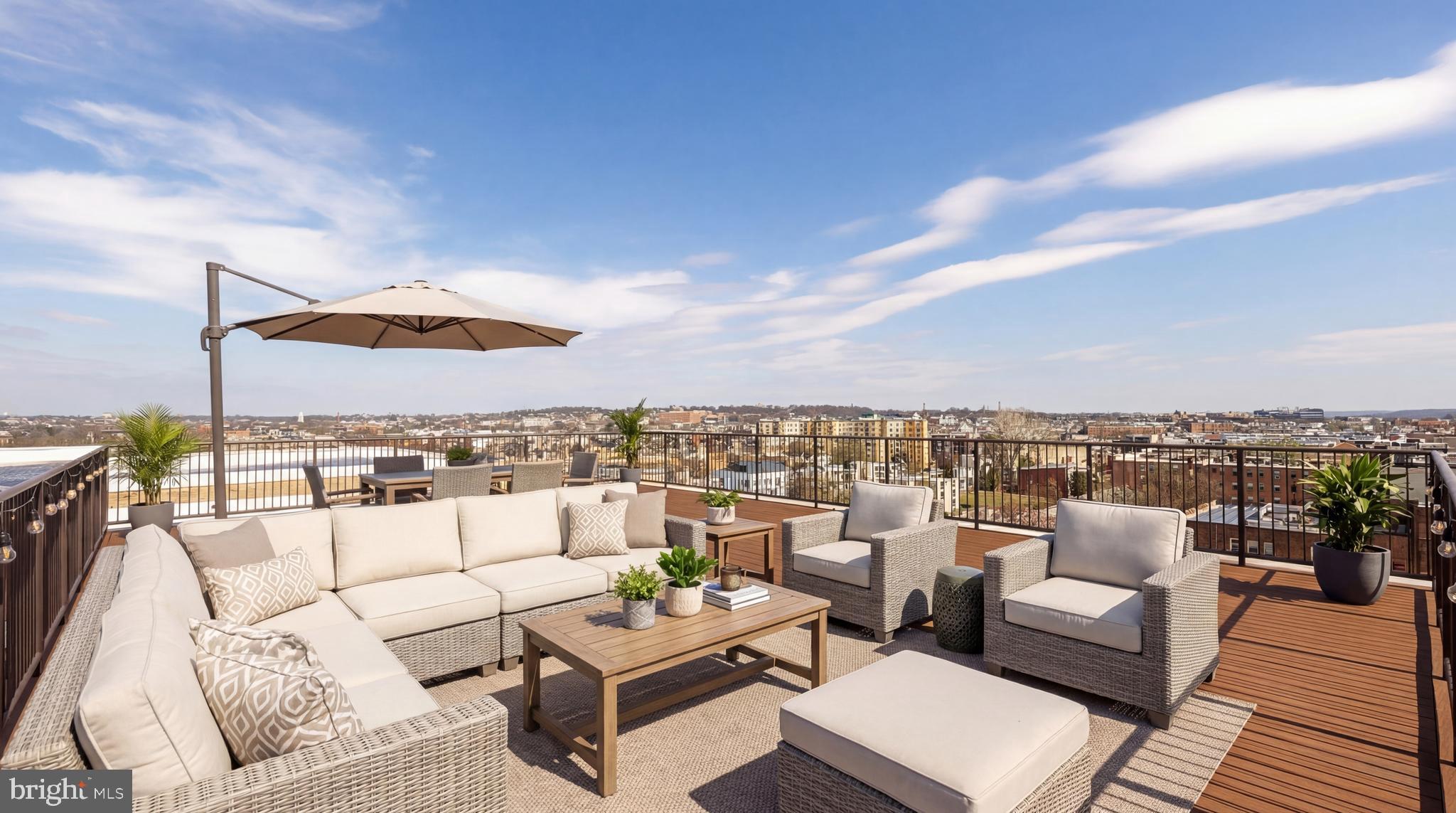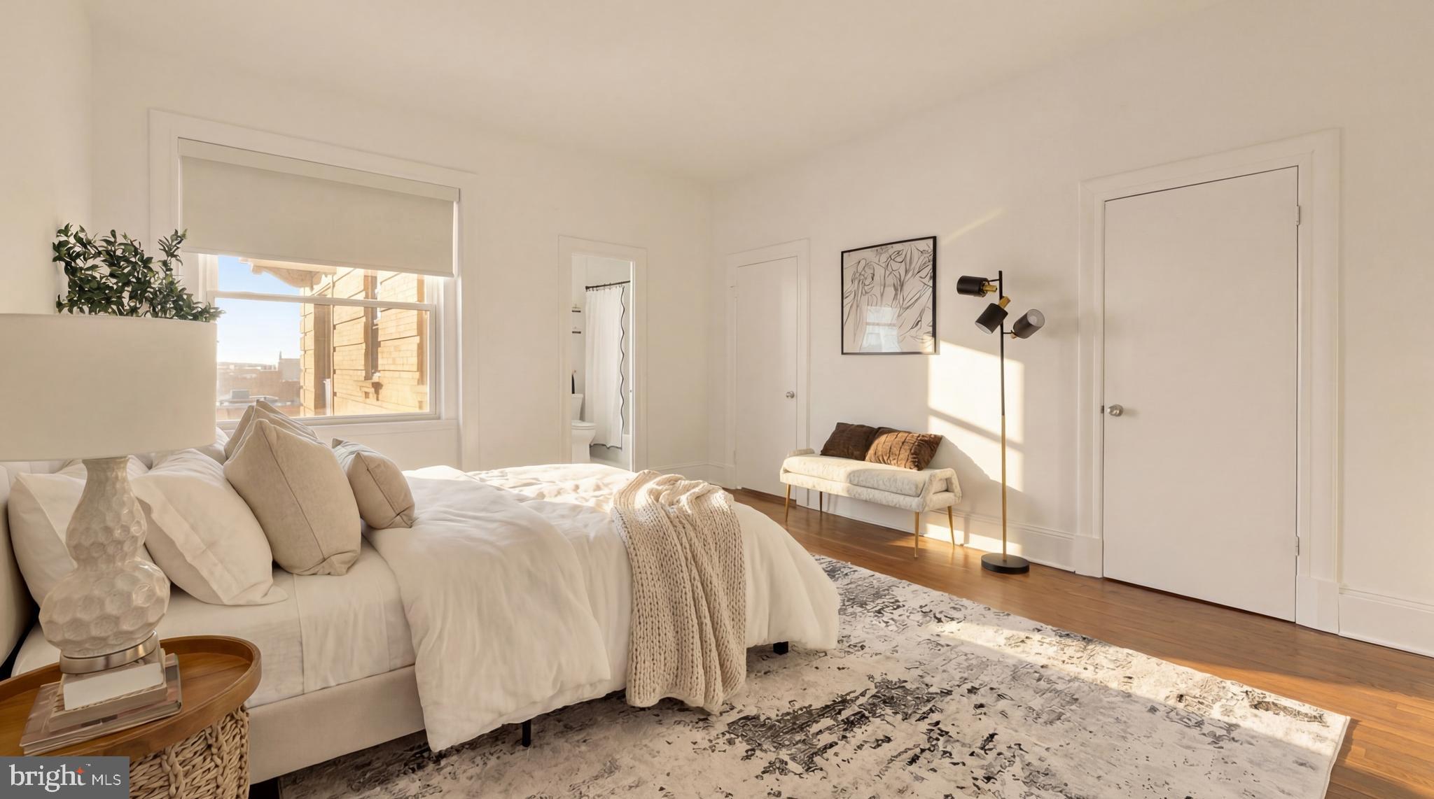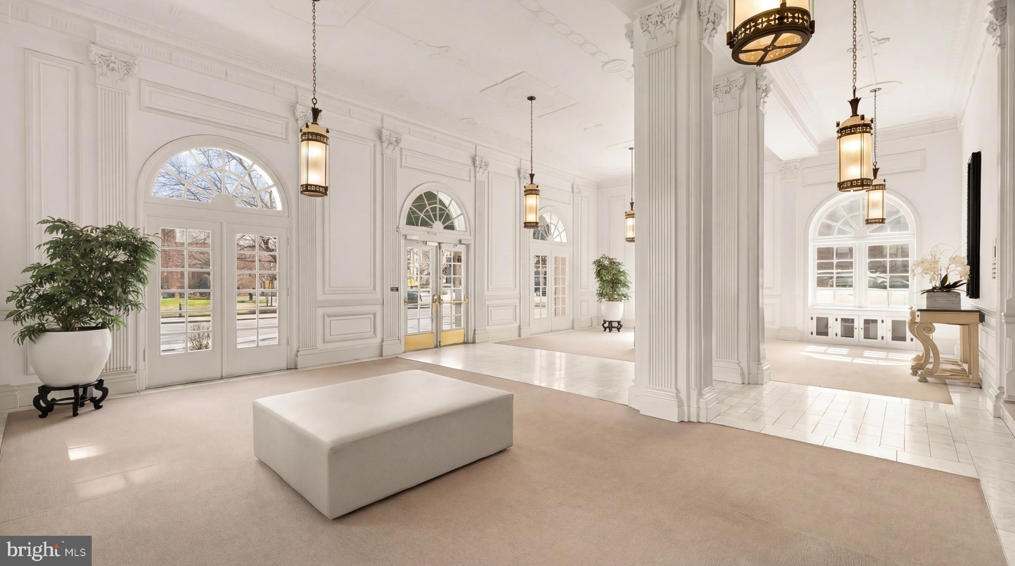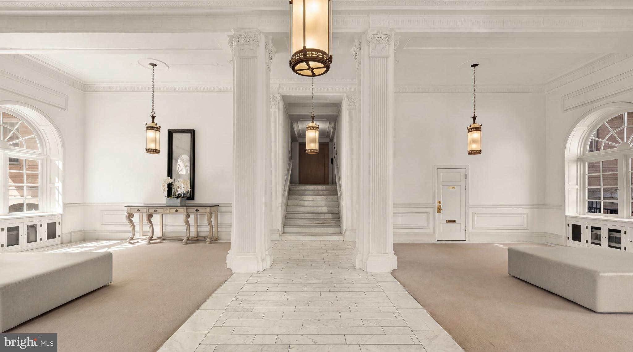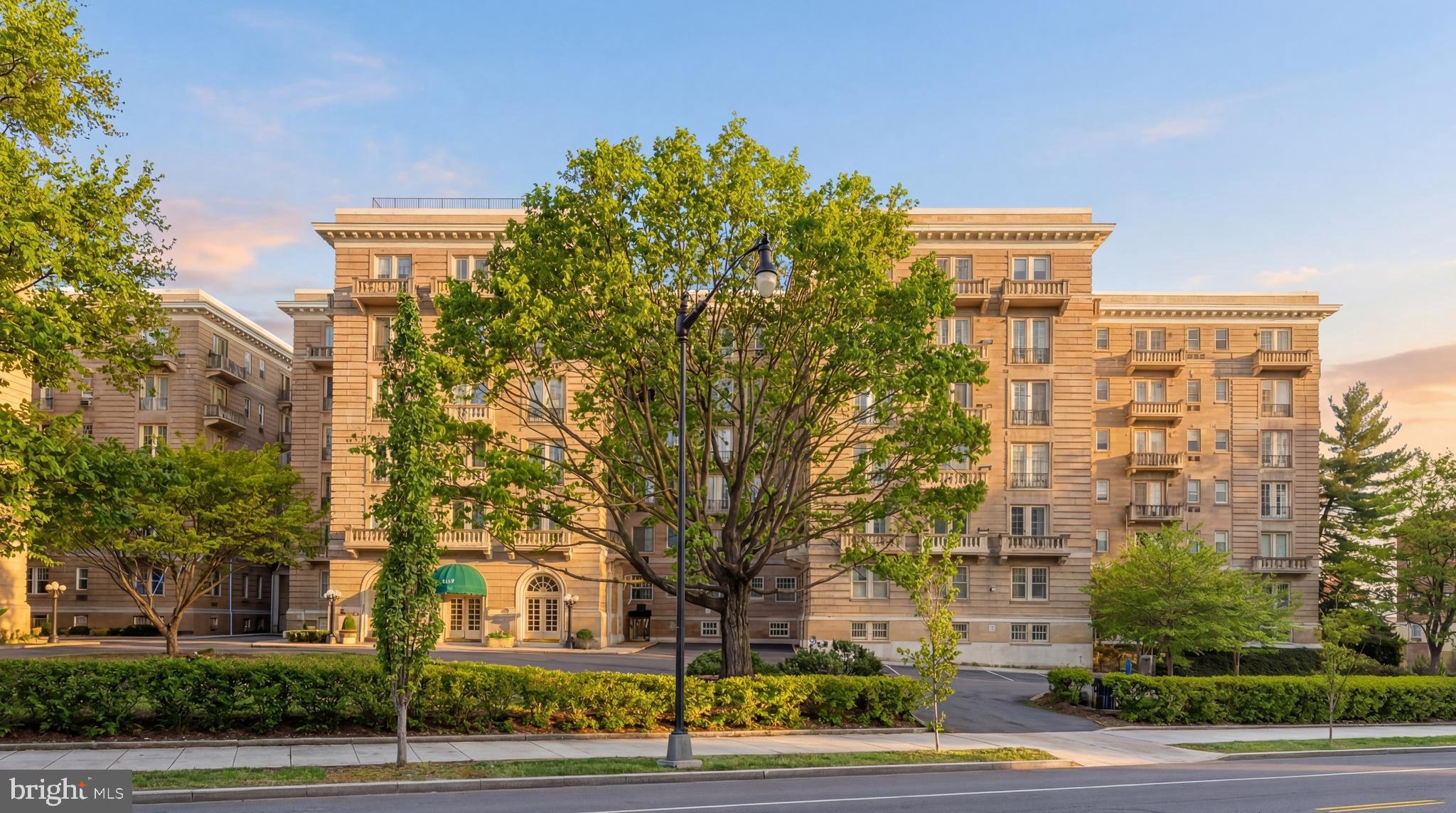 Set far back from the road and elegantly approached by a verdant, sweeping crescent driveway, the Northbrook condominiums are a defining example of early 20th century architecture. Separated into two relatively boutique-sized buildings, the ethereal lobby creates a grand initial impression with its deeply recessed arched windows, intricate plaster moldings, and ornate fixtures. A distinguished two-bedroom residence with two full baths, Unit 501 spans a generous 1,404 square feet of thoughtfully updated living space blended with a full retention of the historic charm associated with the building's pre-war heritage. High ceilings over 9 feet, and hardwood floors are constants throughout. The floor plan revolves around a rare, large open concept living and dining area. Flooded with natural light and enjoying sweeping views the space is anchored by a stylish wall of built-ins on one end and an ample dining nook on the opposite. The latter opens into the spacious kitchen, featuring a suite of full-size stainless-steel appliances including a high-end Bosch dishwasher, as well as a convenient service entrance to enable seamless entertaining. The two large bedrooms both feature ensuite baths, newly reimagined with porcelain floors, white vanities, and subway-tiled tub and shower combinations. Ample storage abounds, with the primary suite showcasing a custom walk-in closet with extensive built-ins. A walk-in, in-unit laundry room completes the residence as a truly coveted amenity in a central urban location. Northbrook II includes a showstopping roof terrace with unbroken, 360-degree views of the city and beyond, as well as a shared courtyard and resident parking lot for a turnkey lifestyle. Walkable to cafes and eateries along Mount Pleasant Street such as La Dona Cafe, Elle, Raven Grill, Joia Burger and OKPB speakeasy complimented by easy public transportation with a metro station less than a half a mile away in Columbia Heights and green space throughout Rock Creek. Unit 501 at Northbrook II is a fine example of elevated modern city living in a pre-war era style . Pet Friendly and Investor Friendly, 27 Shared Parking Spaces for 55 Units