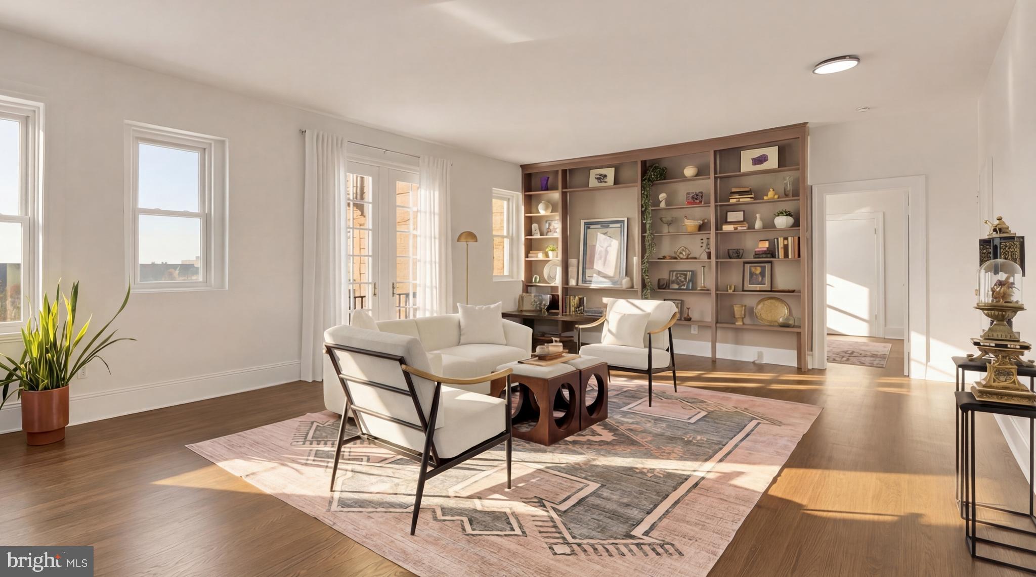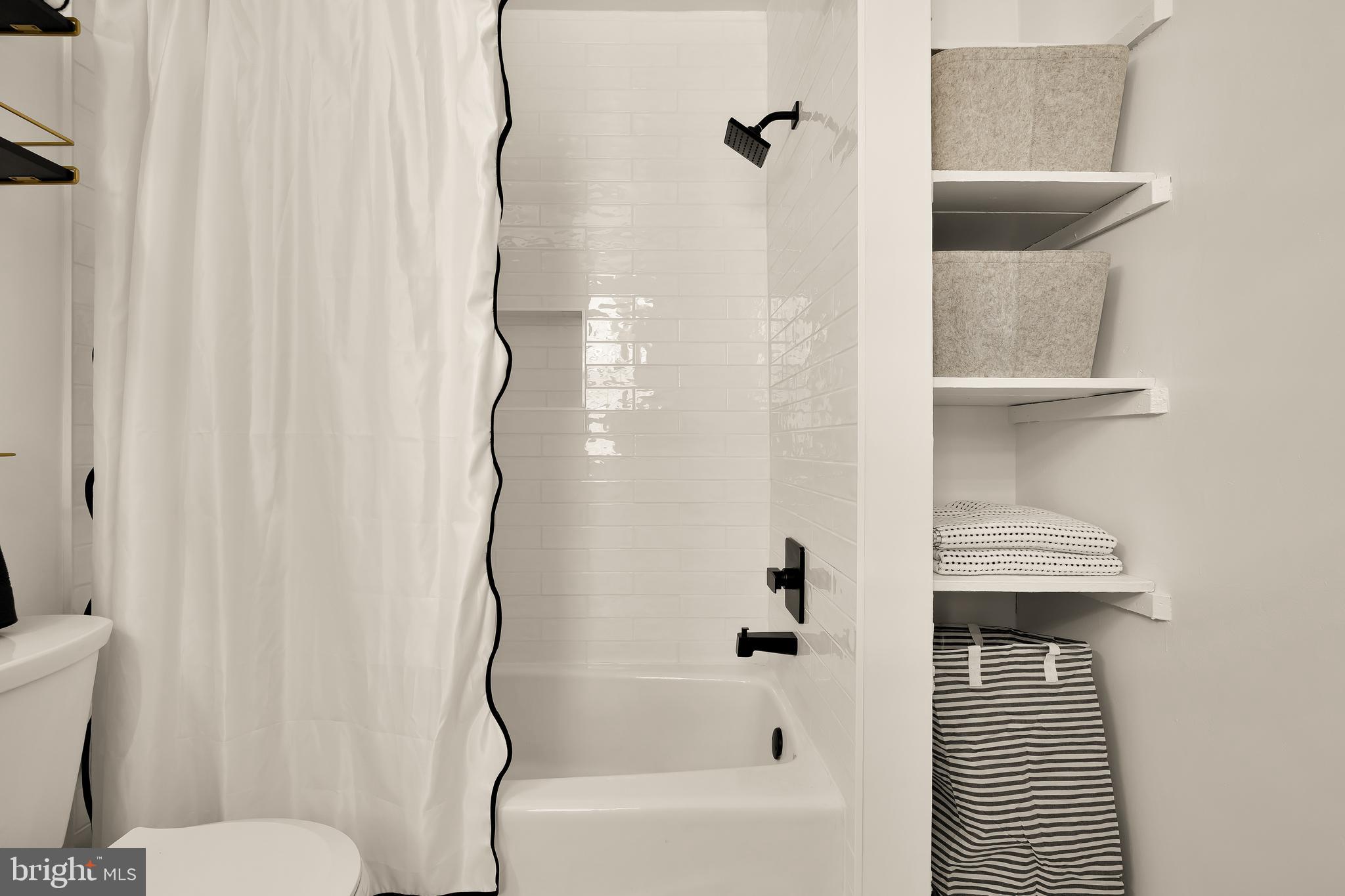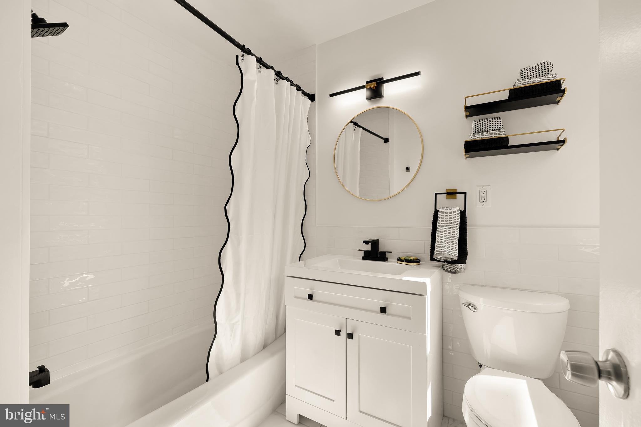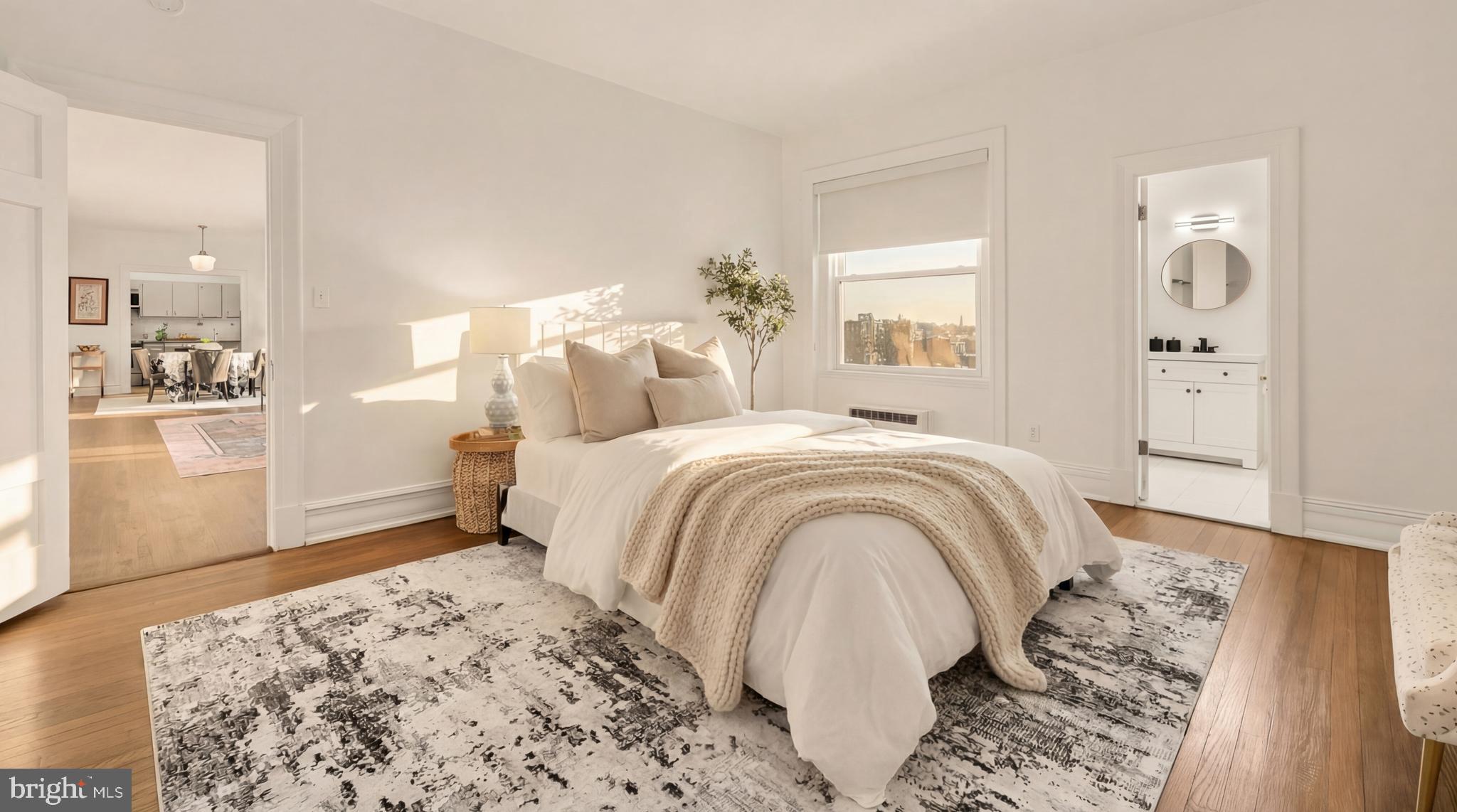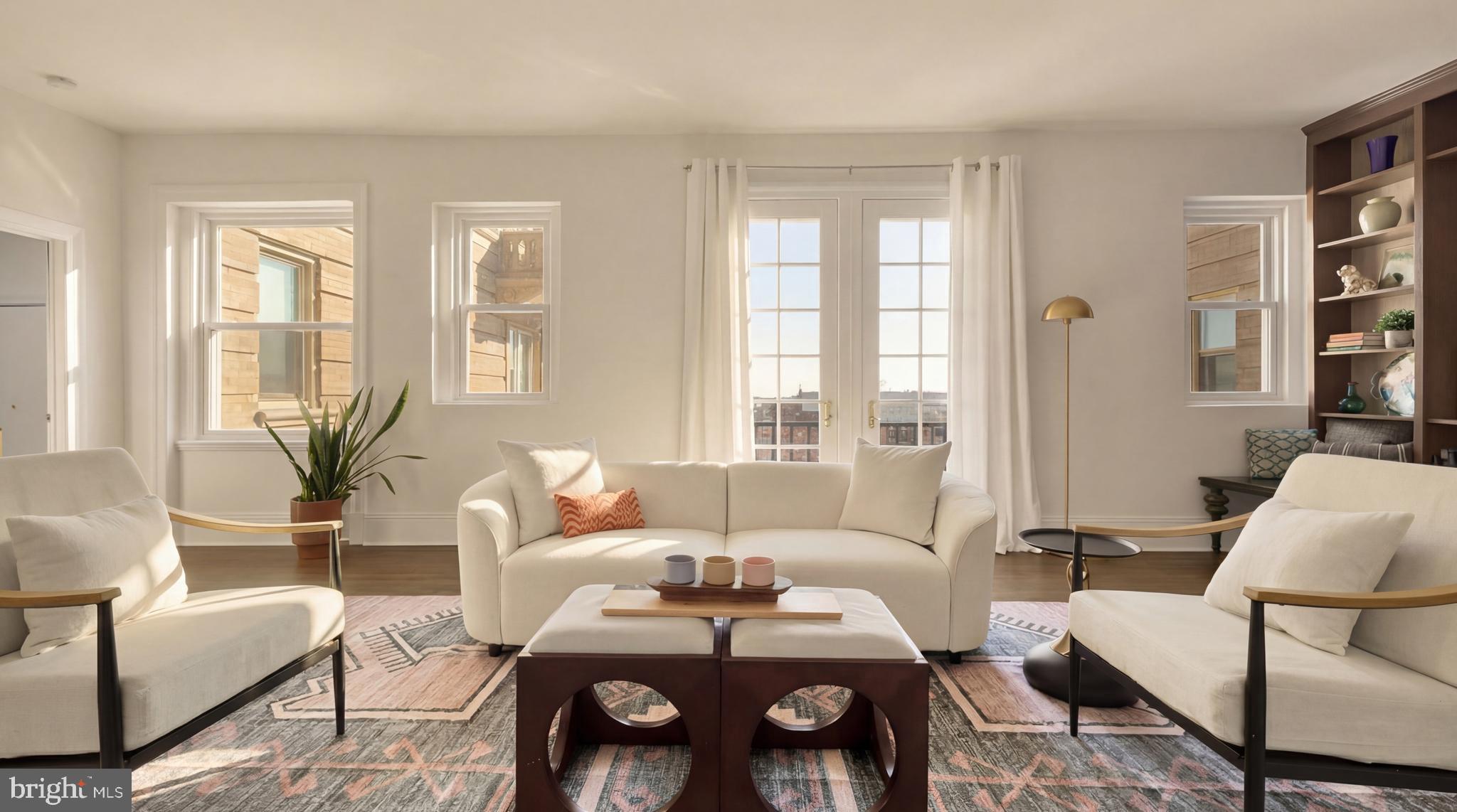 Set far back from the road and elegantly approached by a verdant, sweeping crescent driveway, the Northbrook condominiums are a defining example of early 20th century architecture. Separated into two relatively boutique-sized buildings, the ethereal lobby creates a grand initial impression with its deeply recessed arched windows, intricate plaster moldings, and ornate fixtures. A distinguished two-bedroom residence with two full baths, Unit 501 spans a generous 1,404 square feet of thoughtfully updated living space blended with a full retention of the historic charm associated with the building's pre-war heritage. High ceilings over 9 feet, and hardwood floors are constants throughout. The floor plan revolves around a rare, large open concept living and dining area. Flooded with natural light and enjoying sweeping views the space is anchored by a stylish wall of built-ins on one end and an ample dining nook on the opposite. The latter opens into the spacious kitchen, featuring a suite of full-size stainless-steel appliances including a high-end Bosch dishwasher, as well as a convenient service entrance to enable seamless entertaining. The two large bedrooms both feature ensuite baths, newly reimagined with porcelain floors, white vanities, and subway-tiled tub and shower combinations. Ample storage abounds, with the primary suite showcasing a custom walk-in closet with extensive built-ins. A walk-in, in-unit laundry room completes the residence as a truly coveted amenity in a central urban location. Northbrook II includes a showstopping roof terrace with unbroken, 360-degree views of the city and beyond, as well as a shared courtyard and resident parking lot for a turnkey lifestyle. Walkable to cafes and eateries along Mount Pleasant Street such as La Dona Cafe, Elle, Raven Grill, Joia Burger and OKPB speakeasy complimented by easy public transportation with a metro station less than a half a mile away in Columbia Heights and green space throughout Rock Creek. Unit 501 at Northbrook II is a fine example of elevated modern city living in a pre-war era style . Pet Friendly and Investor Friendly, 27 Shared Parking Spaces for 55 Units