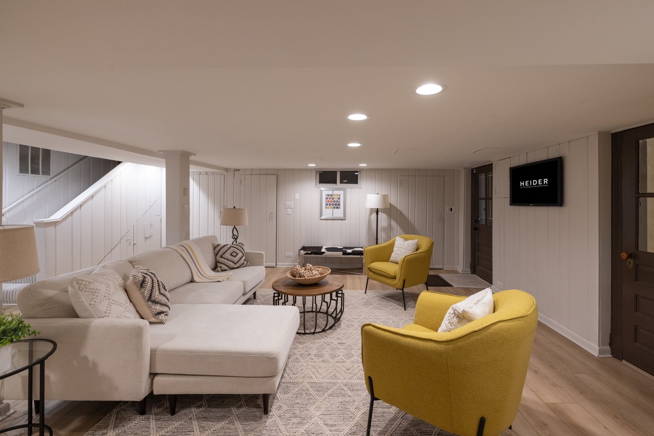The lower level is designed for both relaxation and entertaining, centered around a generous recreation room with concealed storage. A bonus room, powder room, and laundry area complete the space.